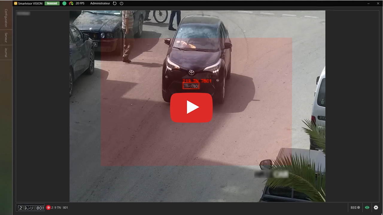 L’ANPR de Smartvisor détecte et lit les plaques d’immatriculation que le véhicule soit en mouvement ou en stationnement.